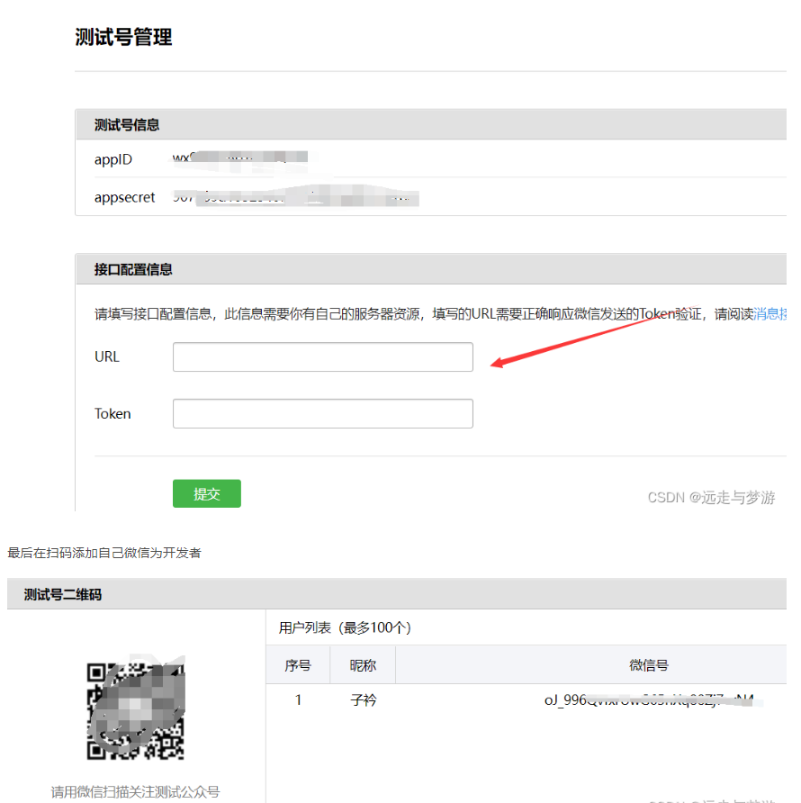 5、此对接方式为测试公众号