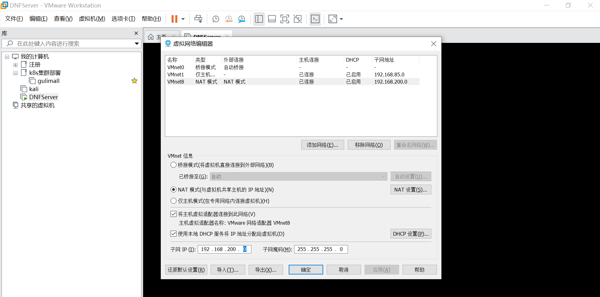 先打开虚拟机 、修改子网 为 200、然后启动虚拟机